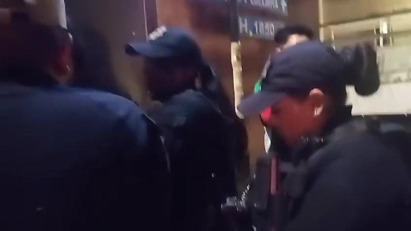 En el video es posible ver cómo los compañeros del manifestante exigen saber en repetidas ocasiones el motivo del arresto, sin tener respuestas de los elementos de seguridad, quienes trasladaron al joven al Ministerio Público.