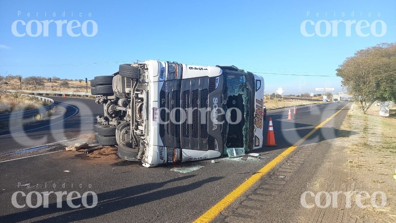 El primer hecho se registró a la altura del trébol de la carretera de cuota Salamanca-León, dónde un tráiler bajaba por el trébol que incorpora la carretera federal 45 con la de cuota, pero por el peso del camión y la velocidad terminó volcando.