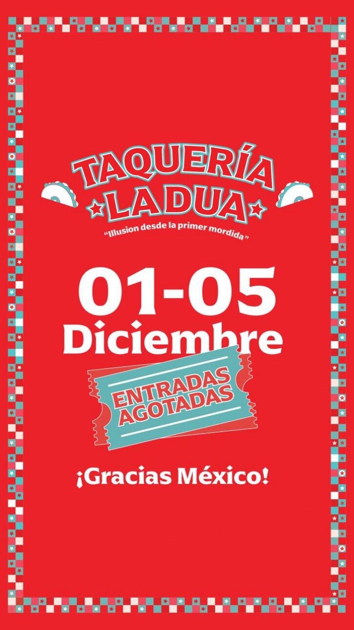 Dua Lipa visita Contramar en cada visita a la metrópoli, es aficionada a la gastronomía mexicana y ahora dio un paso más con la apertura de una taquería temporal llamada La Dua, la cual está disponible solo del 1 al 5 de diciembre previo registro en passline.com, sitio que ya tiene agotados los 800 boletos previstos para cada día.
